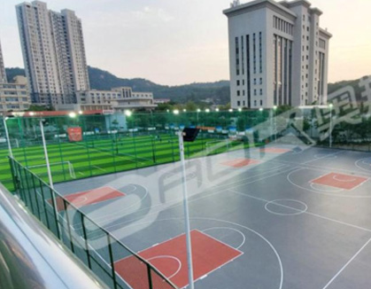 復合型跑道也被稱作三明治型,介于透氣型與混合型之間,奧翔復合型跑道分三層結構,底層采用環保膠水和 EPDM 橡膠顆粒攤鋪,中段刮涂雙組份 PU 混合 料為防水層,面層噴涂形成非滲水型,工藝成熟,性價比高,理化性能符合最新國家標準及各省市地(團體)標準。