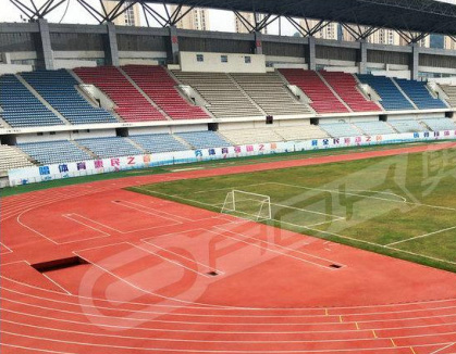 全塑型跑道底層采用雙組份 PU 材料一體澆制成型,面層為聚氨酯噴面膠混合高彈性 EPDM 顆粒噴涂而成(也可使用撒顆粒或無顆粒自結紋工藝),奧翔獨特 的微發泡技術,使其運動功能更加優異,理化性能符合最新國家標準及各省市地方(團體)標準。