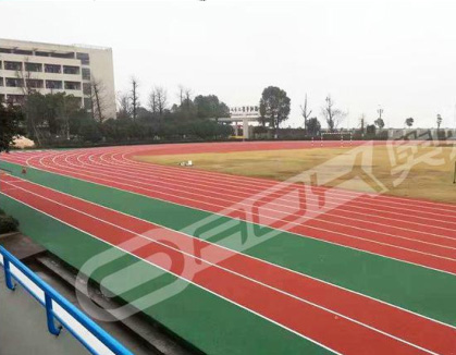 混合型跑道為非滲水型跑道,底層采用雙組份 PU 混合料添加橡膠顆粒攤鋪,面層為聚氨酯噴面膠混合高彈性 EPDM 顆粒噴涂而成,奧翔獨特的微發泡技術, 使其運動功能更加優異,理化性能符合最新國家標準及各省市地方(團體)標準。
