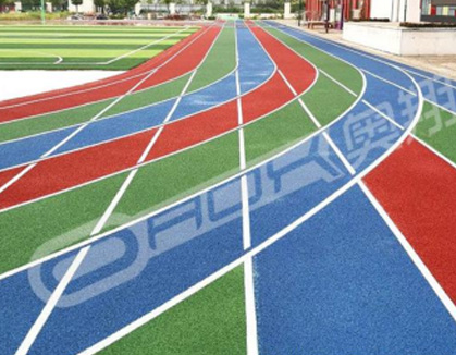 透氣型跑道又稱為滲水型跑道,具有良好的透氣、透水功能。奧翔透氣型跑道采用無溶劑環保膠粘劑和高彈性 EPDM 橡膠顆粒制作而成,工藝成熟,性價比 高,理化性能符合最新國家標準及各省市地方(團體)標準。